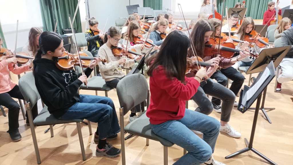 Durant aquesta jornada, els joves músics van poder compartir experiències musicals i personals amb els alumnes de la resta de centres a través de la preparació conjunta d’unes peces per a orquestra, amb assajos, i el propi concert. Una jornada molt enriquidora que va servir per intercanviar maneres de treballar, gaudir de l’experiència, de la música i de la convivència per créixer musicalment i personalment.