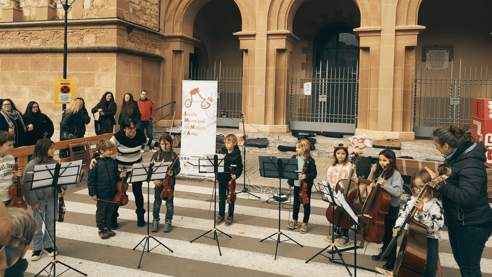 El passat 14 de desembre, en el marc de la Fira d’Hivern d’Artés, alguns alumnes de l’escola van actuar a la Plaça de l’Església del municipi. En petites agrupacions, cantants, trombonistes, pianistes, un grupet de corda de petitons, un grupet d’alumnes de dansa i Les Ventcordades, van oferir melodies que el públic anava seguint amb atenció, tot i el fred!